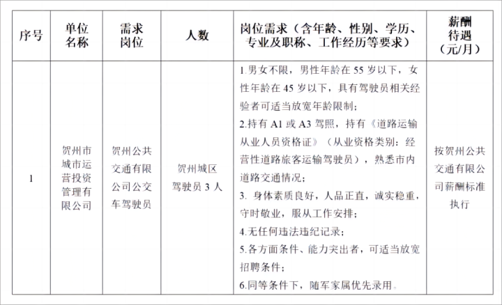 賀州市城市運(yùn)營投資管理有限公司2023年第一次招聘公告(第二批次)2023-08-11